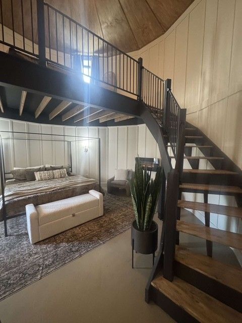 Where nature meets luxury. Enjoy the sunsets, sit around the campfire, and unwind in the beautiful lake setting that awaits you. A spacious silo suite sleeps 6 comfortably A king size bed wrapped in Brooklinen sheets sleeps 2-3, a loft room sleeps 2 in a full size bed covered in Beddys Bedding. A futon to allow for extra seating or sleeping. Snuggle next to the fireplace or enjoy a cup of Black Silos blend coffee while you relax and escape under the stars around the firepit.